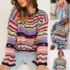 Grey Color Long Sleeve Animal Leopard Print Sweater Cardigan for Women